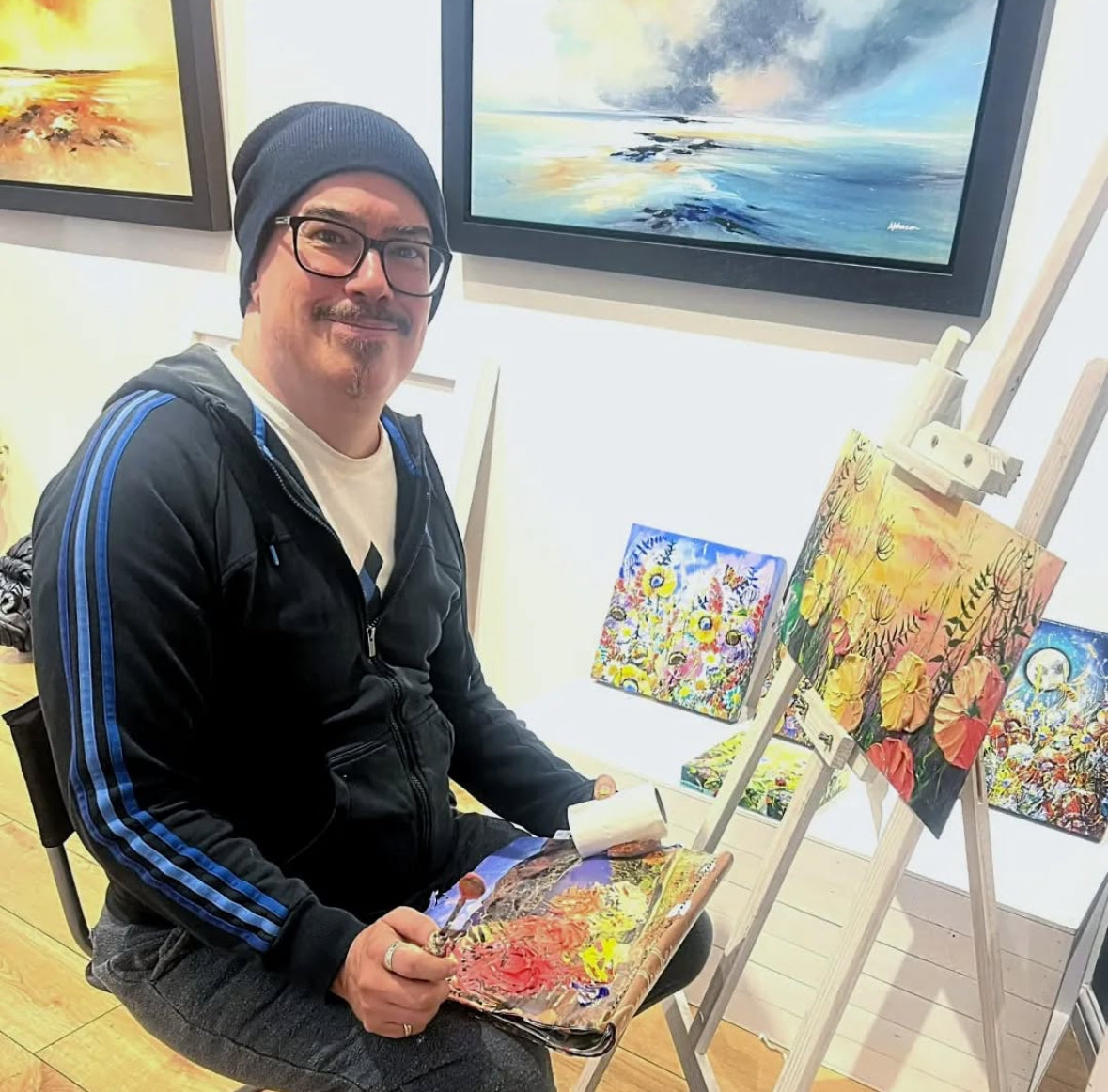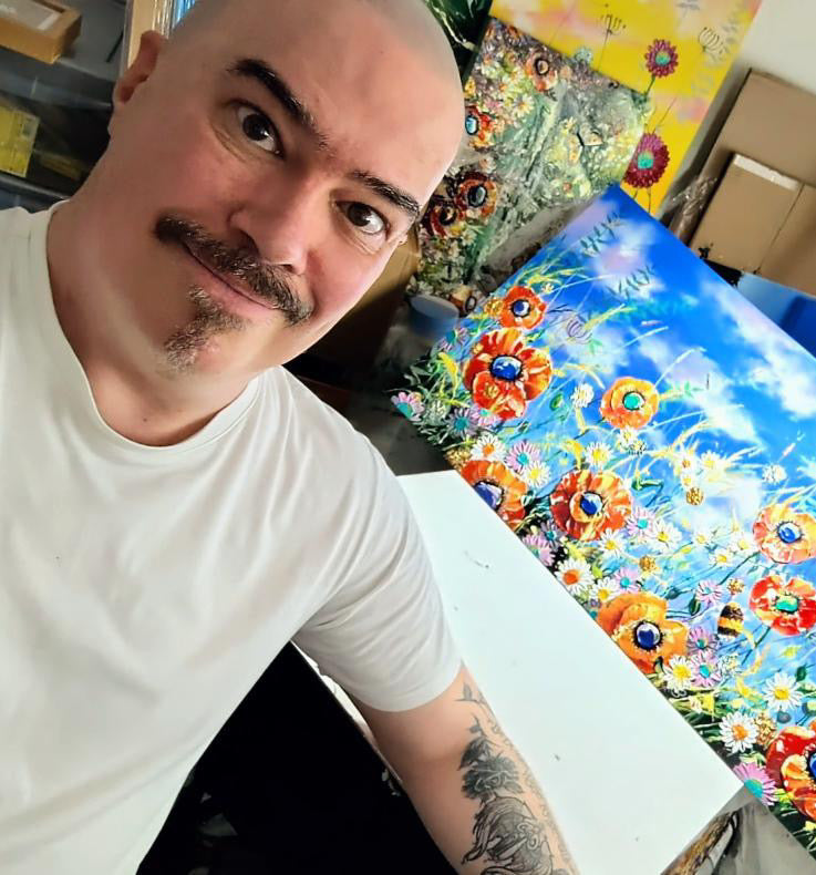 He studied at Duncan of Jordanstone College of Art in Dundee, and gained a degree in animation. This however is still echoed in his work regarding colour use and the desire to bring his work ‘alive’ on the canvas.Every aspect of my art is hand crafted from the very start, each 3D addition to my art is imagined and then sculpted, be that a butterfly, ladybird or sculpted flower.Andrew opted to progress his fine art career and began to focus on painting full time instead of continuing his Graphic Design career. He felt passionate enough about his work to take that leap of faith.