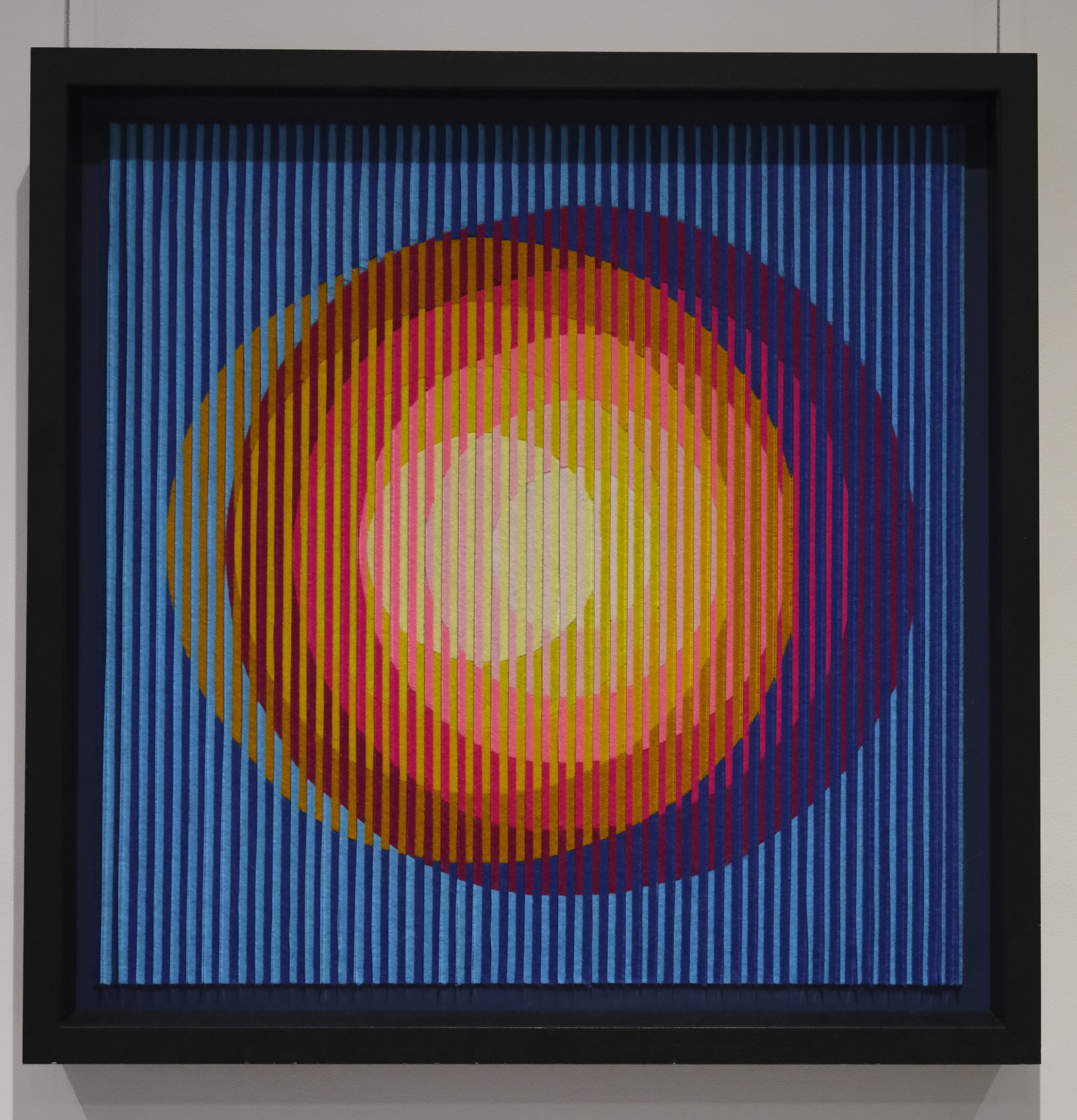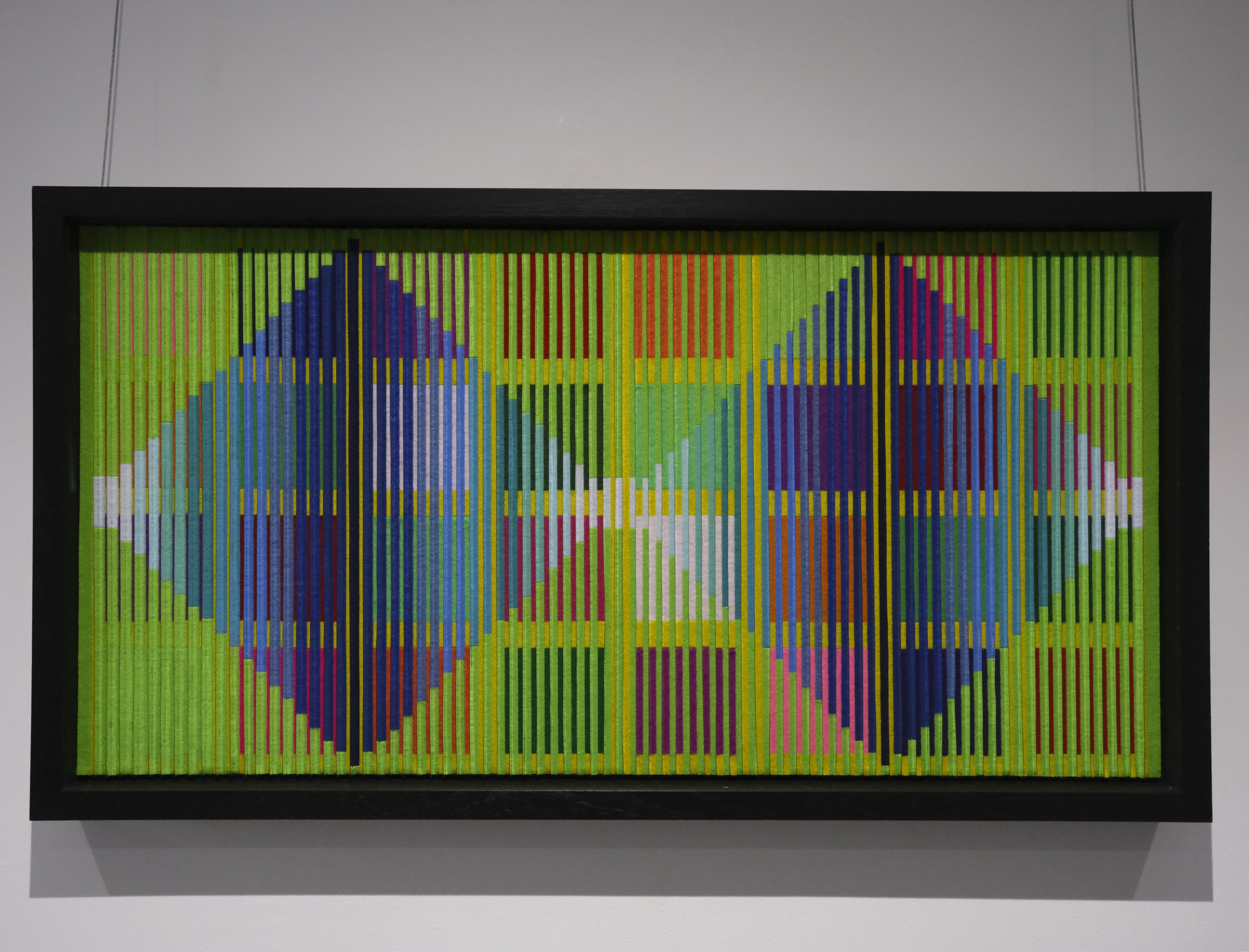 Sena works with felt fabric using its texture and vibrant colours to produce distinctive abstract and optical art. Some designs incorporate changing geometric shapes while others hold powerful positive words. His geometric pieces are influenced by colours and patterns found in nature- sun, sea, water and flora. Sena continues to develop new designs and techniques to create hand crafted limited series in editions of between 6-10.